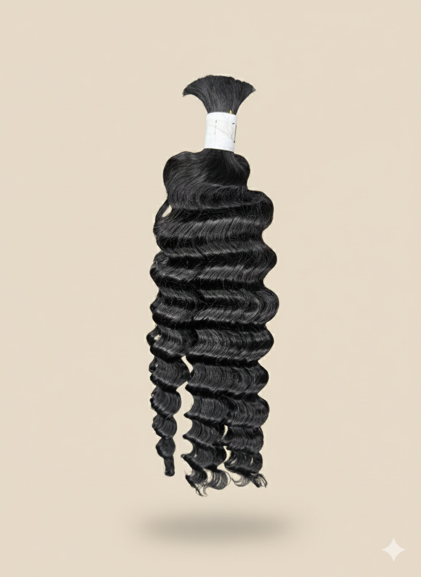 Deep Wave Virgin Bulk Hair is perfect for full, defined boho braids and curly-end knotless styles. The texture holds its wave pattern beautifully, giving a soft, voluminous look.